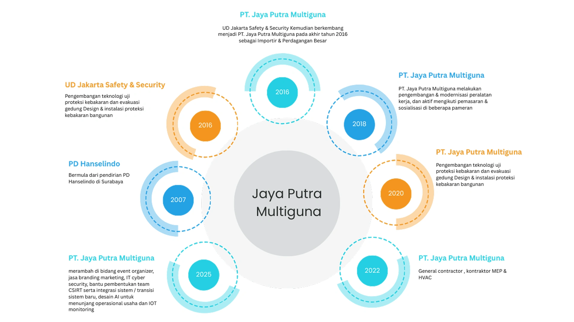 Berdiri di tahun 2017, PT. Jaya Putra Multiguna adalah perusahaan importir yang bergerak di bidang bidang alat keselamatan yang meliputi industri Fire Extinguisher, Fire Fighting Equipments, Fire Alarm – Sistem Addressable, Alat Keselamatan Di Laut, Fire Hydrant & Sprinkler, Selang Pemadam.